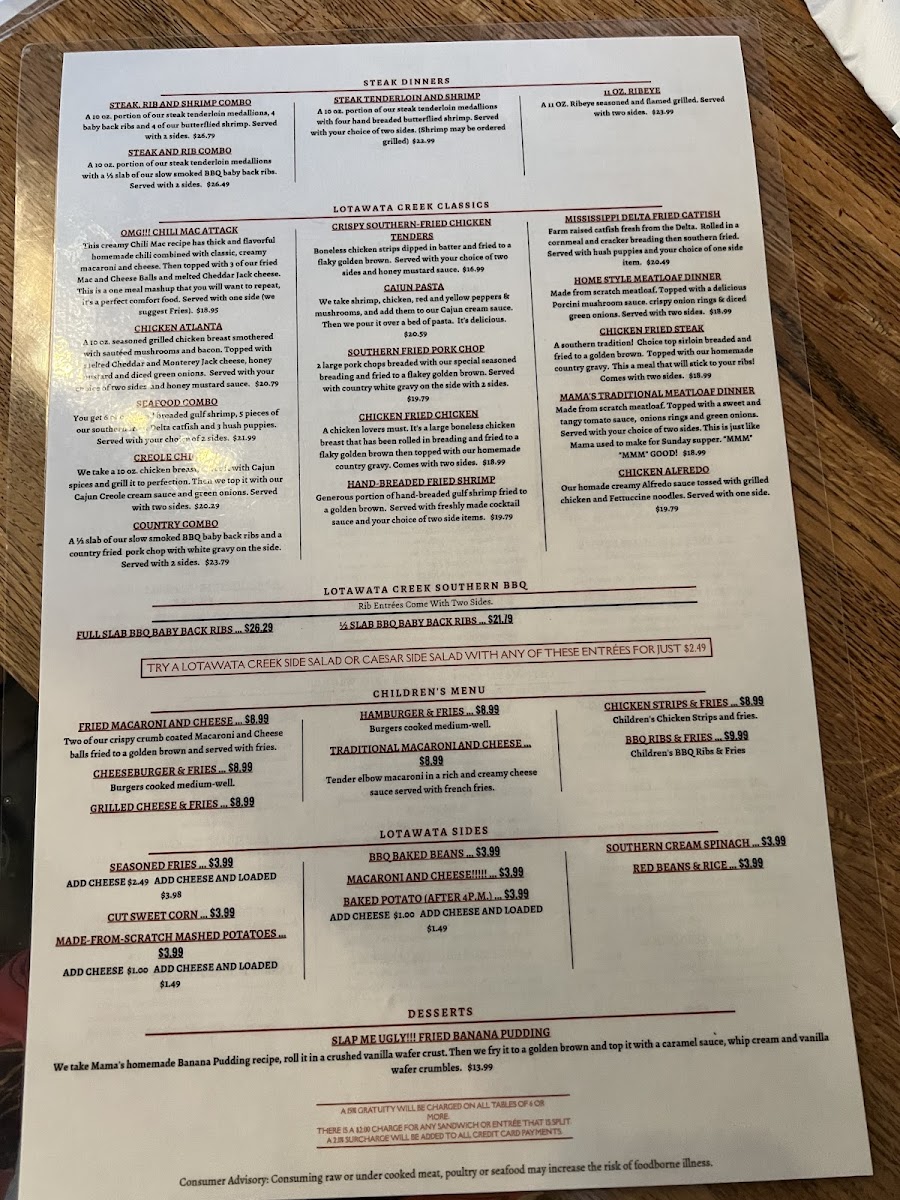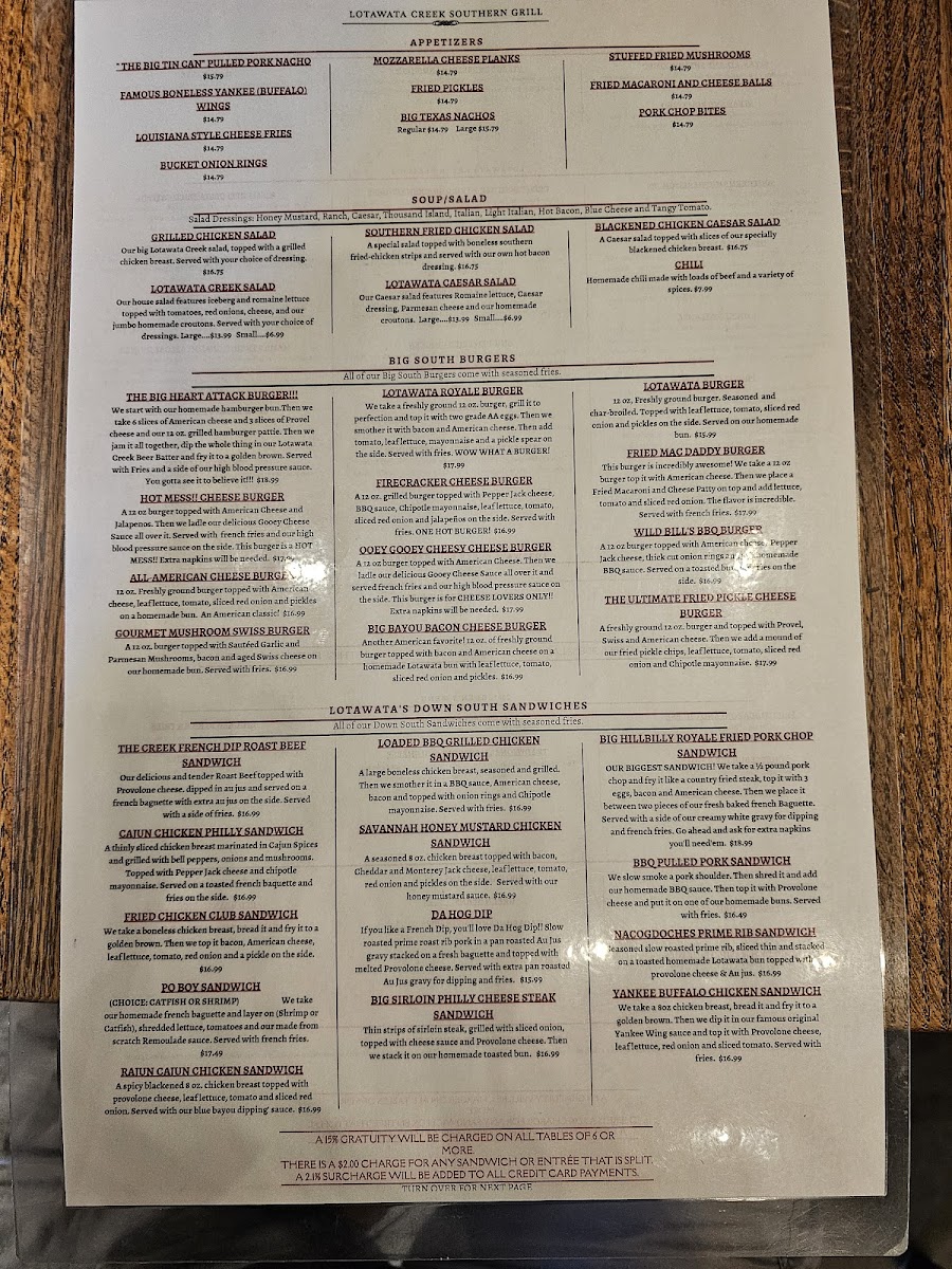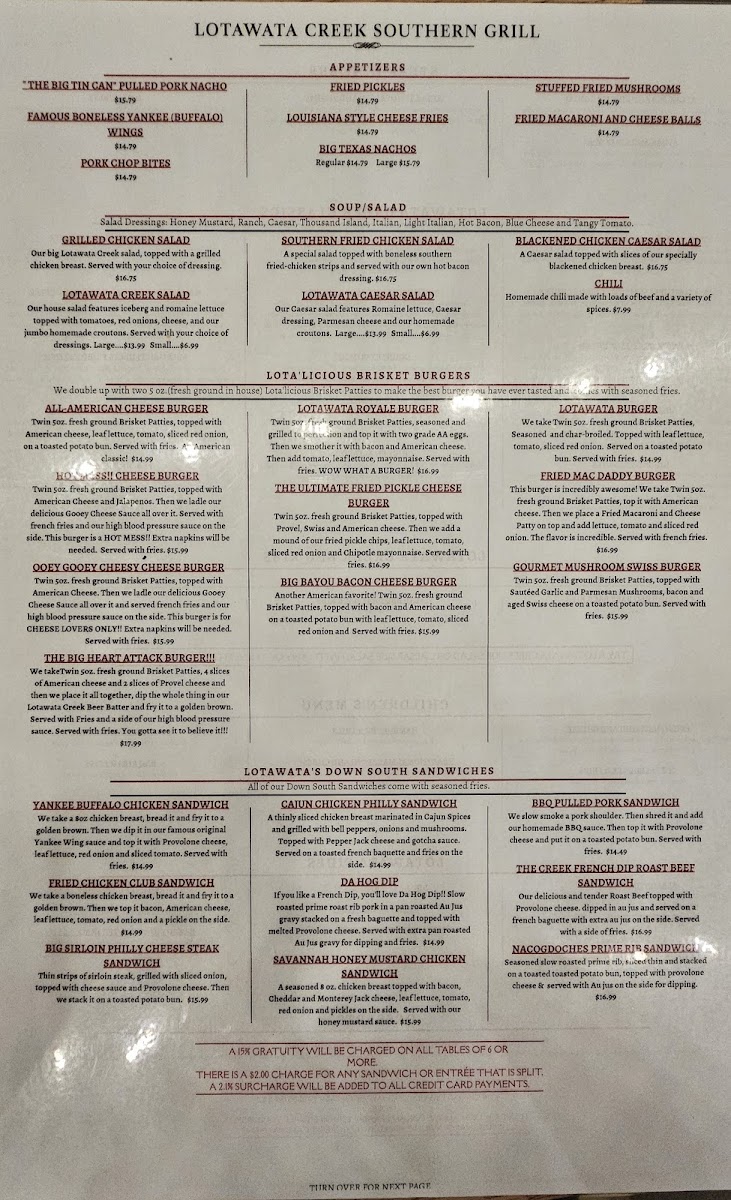 If you're looking for a place that serves hearty comfort food with a twist, then Lotawata Creek Menu is definitely worth checking out. Nestled in Fairview Heights, IL, this spot brings a laid-back, welcoming atmosphere that’s perfect for any occasion. Whether you’re in the mood for classic Southern dishes or something more adventurous, the menu has something for everyone. From the creamy shrimp and grits to the mouthwatering steaks, each dish is crafted with fresh ingredients and a lot of love. And if you’re a fan of good old-fashioned Southern hospitality, you'll definitely feel right at home here. So take a seat, explore the menu, and get ready to indulge in some unforgettable flavors!